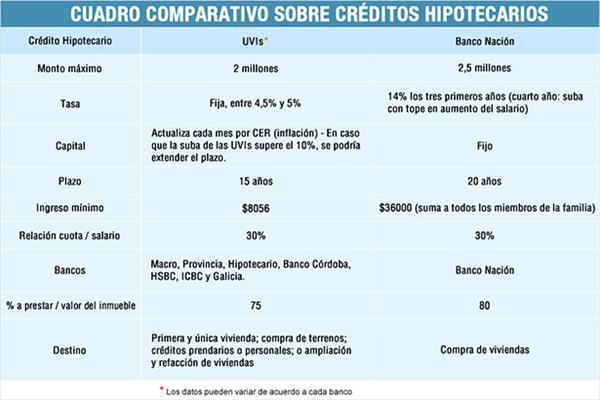 los pro y contra de cada línea de crédito hipotecario del Nación y del Banco