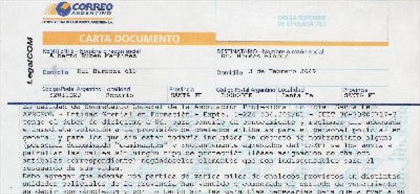 carta documento era válida, aun cuando el domicilio del empleador adonde estaba