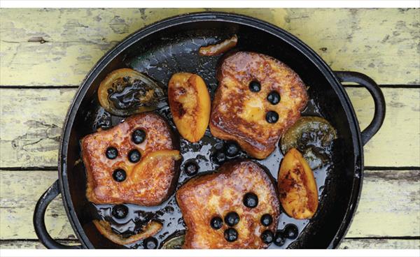 y ralladura de naranja, y acompañados por frutas doradas en manteca.