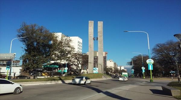 Plaza Alberdi: Monumento Alberdi y Estación Mitre.