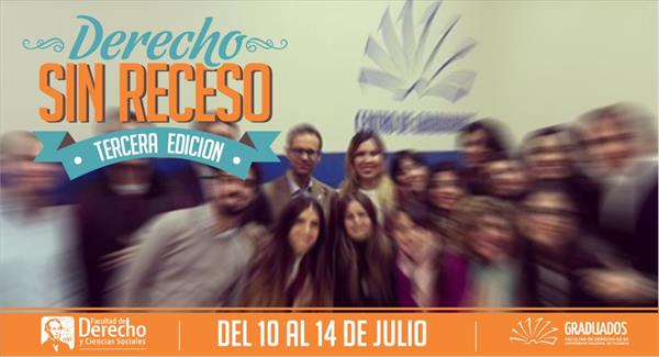 Del 10 al 14 de julio, se presentará la tercera edición del ciclo Derecho sin Receso, organizado por el Centro de Graduados de la Facultad de Derecho y Ciencias Sociales de la UNT. La propuesta incluirá este año la más extensa oferta académica y cultural de su historia, con siete cursos, muestras de arte, teatro, stand up, magia, música y recitales.