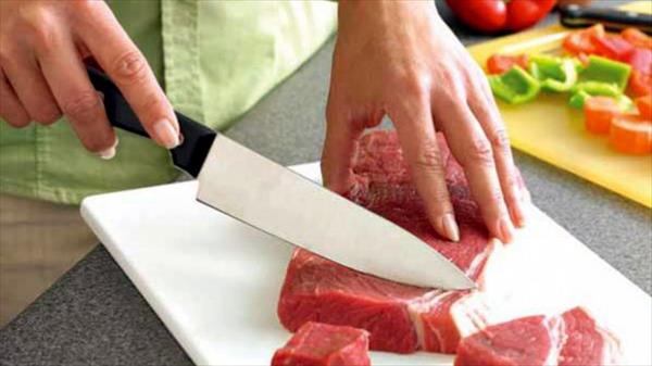 misma tabla y cuchillo para cortar la carne cruda y las verduras que no se