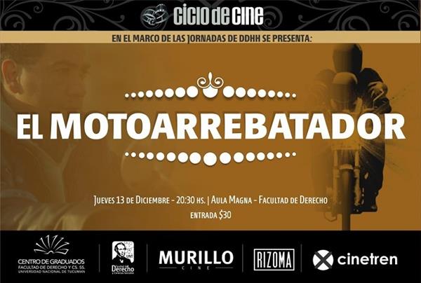 cabo muestra del film tucumano El Motoarrebatador, el 13 de diciembre, a las 20:30 horas en el Aula
