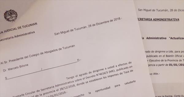 Abogados de Tucumán se resolvió dar difusión a las nuevas tarifas de Tasas de
