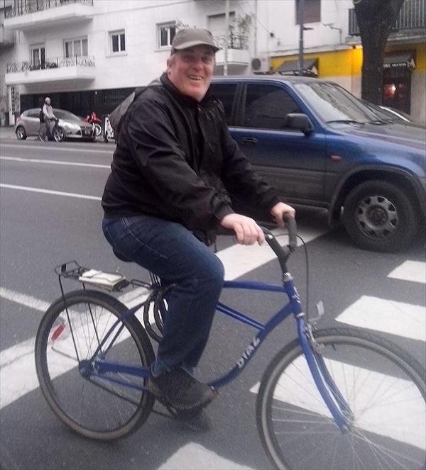 porteño en su sencilla bicicleta playera azul. Como solía hacerlo cada vez que