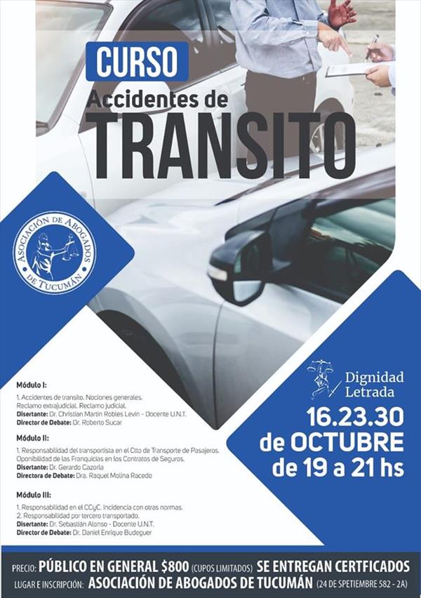 de 19 a 21 horas se llevará a cabo el curso “Accidentes de Tránsito”,