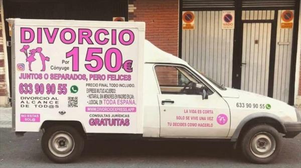 de la “divorcioneta”, la camioneta que promociona el divorcio express