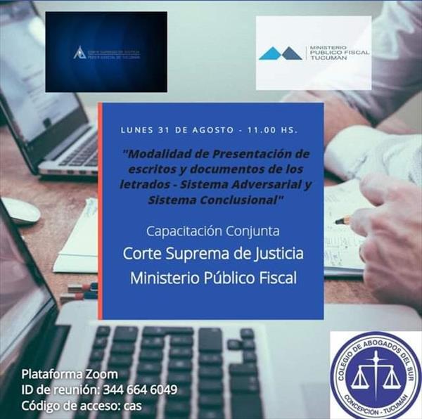 El pasado lunes, el Colegio de Abogados del Sur de Tucumán brindó capacitación conjunta con la Corte Suprema de Justicia y el Ministerio Público Fiscal sobre la “Modalidad de presentación de escritos y documentos de letrados- Sistema adversarial y Sistema conclusional“.