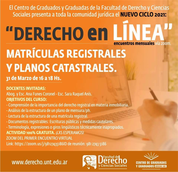 El Centro de Graduados y Graduadas de la Facultad presenta a toda la comunidad jurídica el nuevo ciclo 2021: “DERECHO EN LÍNEA”.