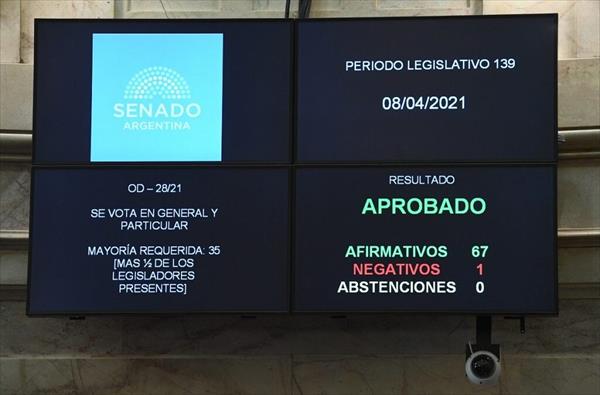 Nación fue aprobado ayer en el Senado con 67 votos afirmativos y uno negativo,