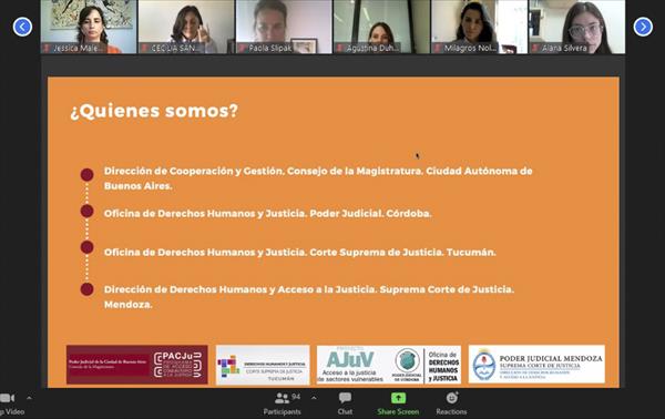 El evento, realizado a través de la plataforma Zoom, contó con la participación activa de los poderes judiciales de la CABA, Mendoza, Córdoba y Tucumán. Además, pudieron acceder a ella todas las personas interesadas en la participación ciudadana y el acceso a la justicia.