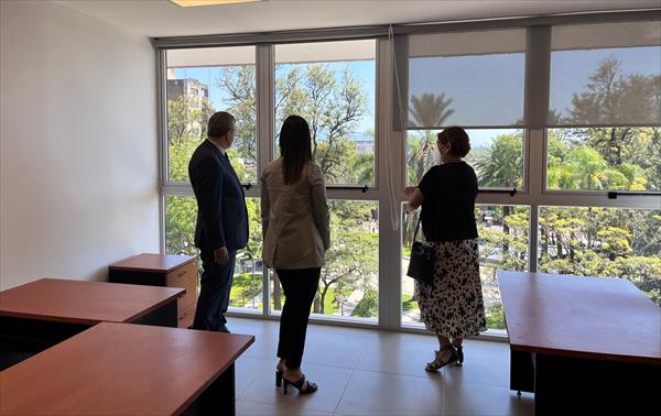 La Corte Suprema de Justicia realizó esta mañana un recorrido por las instalaciones de un nuevo sector del Centro Judicial Concepción mediante el cual el edificio principal de esta sede del sur contará con una ampliación de 400 metros, ubicados en el cuarto piso del edificio de calle España. La visita estuvo encabezada por el Presidente de la Corte -Dr. Daniel Leiva- y la señora Vocal, Dra. Eleonora Rodríguez Campos, y contó con la presencia de la Delegada Magistrada de ese centro judicial -Dra. Elena Grellet-, así como distintos magistrados y magistradas, entre otros asistentes. Las nuevas dependencias forman parte de un proyecto a largo plazo de esta Corte que pretende ampliar el espacio físico de las instalaciones de los Tribunales de Concepción, generando alrededor de 3.000 metros cuadrados de superficie que permitirán poner en funcionamiento distintas unidades jurisdiccionales y no jurisdiccionales.
